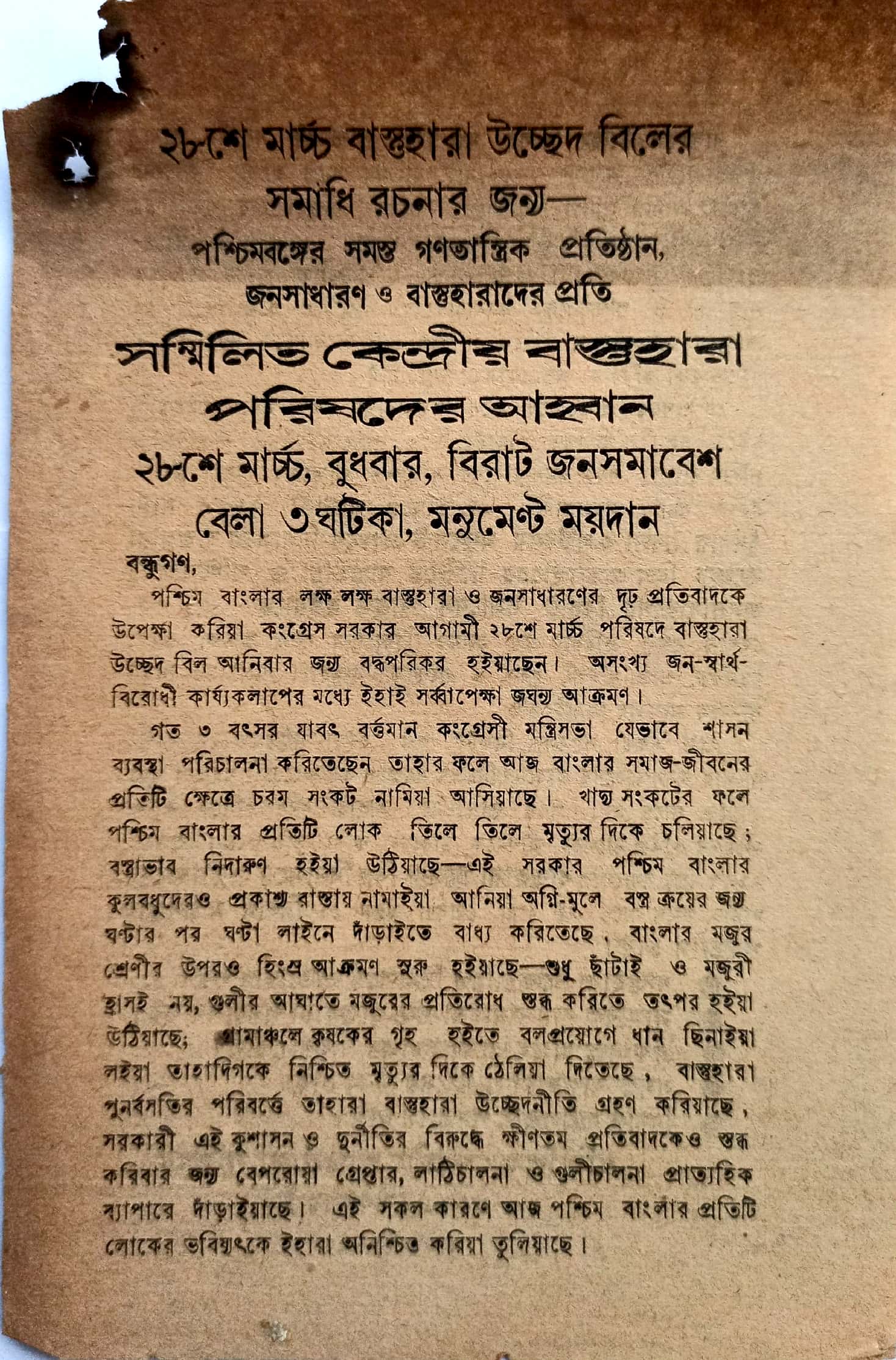 The primary aim of the organization is to stand by those refugees who are victims of Partition. As an organization committed to the welfare of refugees, our goal is to ensure full rehabilitation and citizenship rights for all refugees by the Government of India. We will also strive to establish a democratic and secular society where all forms of exploitation will be abolished.